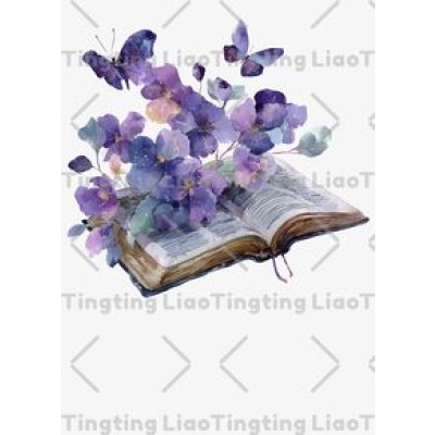 Old Books,Purple Flowers,Watercolor Illustrations,Cures