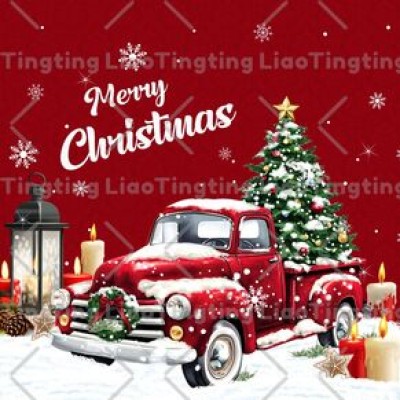 Christmas,Christmas Truck,Winter,Snowflakes,Red