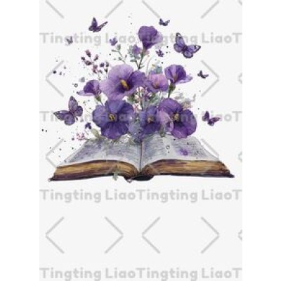 Old Books,Purple Flowers,Watercolor Illustrations,Cures