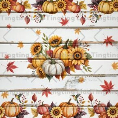 Autumn,Maple Leaf,Pumpkin,Maple Leaf,Sunflower,Wood Grain Background