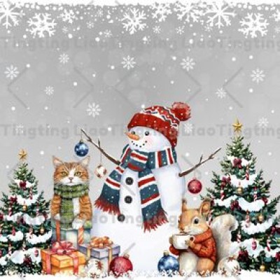 Christmas,Snowman,Christmas Tree,Snowflake,Squirrel,Cat,Grey