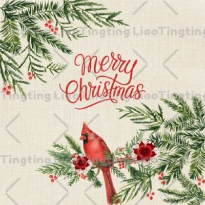 Christmas,Text,Flowers,Berries,Plant,Cardinals,Pastoral,Linen