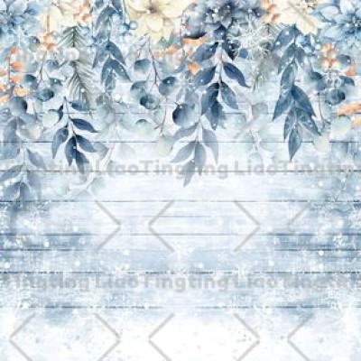 Christmas,Winter,Eucalyptus Leaves,Poinsettia,Blue Wood Grain