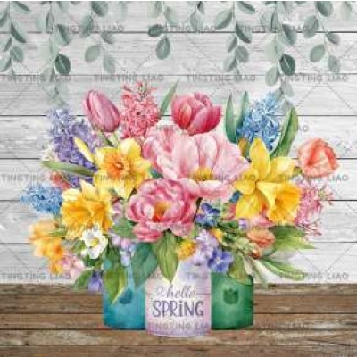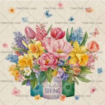 Spring,Flowers,Poppy Flowers,Daisy,Roses,Tulips,Hand Painted