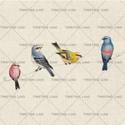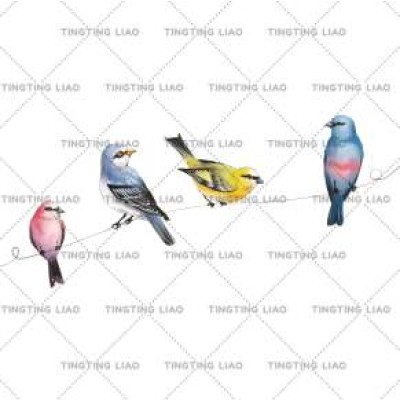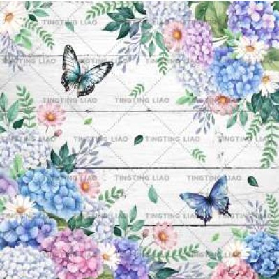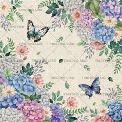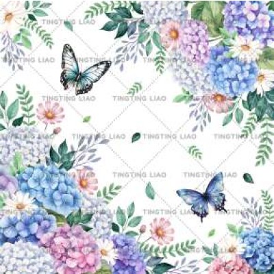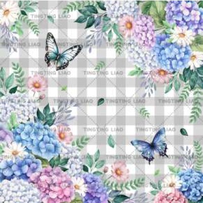 Spring,Embroidered Balls,Daisy,Butterflies,Leaves,Watercolor,Woodcut