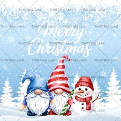 Winter,Christmas,Christmas Tree,Dwarfs,Watercolor,Hand-drawn,Snowflakes