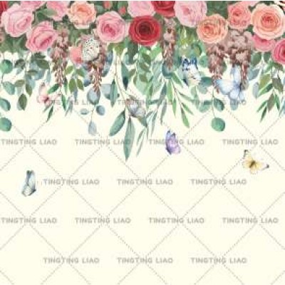 Valentine's Day,Spring,Flowers,Roses,Eucalyptus Leaves,Butterflies,Watercolor Style