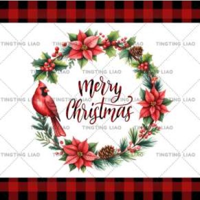 Winter,Christmas,A Redhead,Cardinal Bird,Hut,Snowflakes,Black And White Gauze