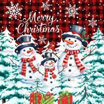 Winter,Christmas,Snowman,Christmas Tree,Snowflakes,Red Patches