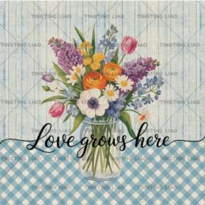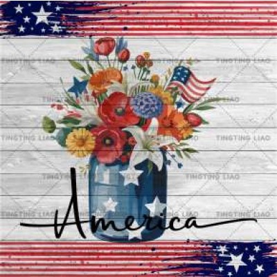 Spring,Independence Day,Flowers,U.S. Flag,Yumei,Daisy,Watercolor Style,Woodcut