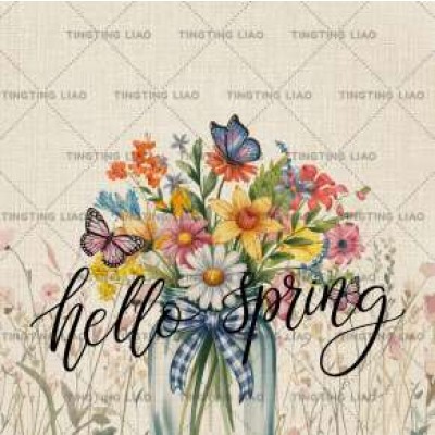 Spring,Flowers,Daisy,Butterflies,Watercolor Style,Hello Spring
