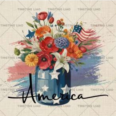 Spring,Independence Day,Flowers,U.S. Flag,Yumei,Daisy,Watercolor Style