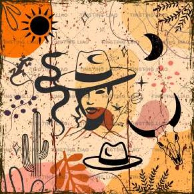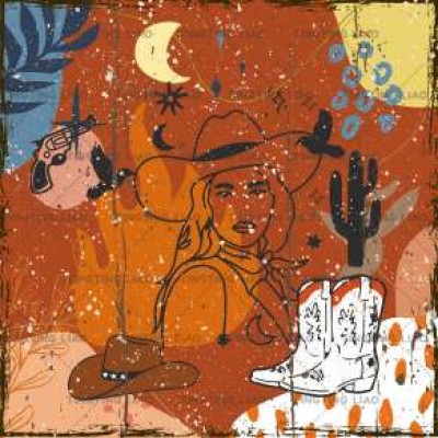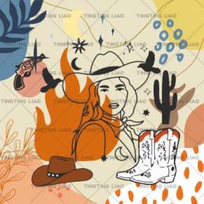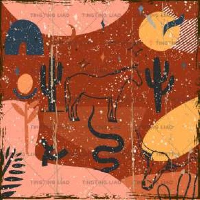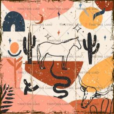 Abstract,Cartoon,West,Cowboys,Animals,Cactus