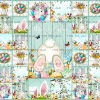 Easter,Spring,Eggs,Rabbits,Round Table Covers,Green Wood Patterns