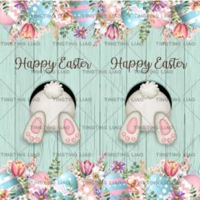 Easter,Spring,Eggs,Rabbits,Two-Stained Curtains,Water Duck Green Wood Patterns