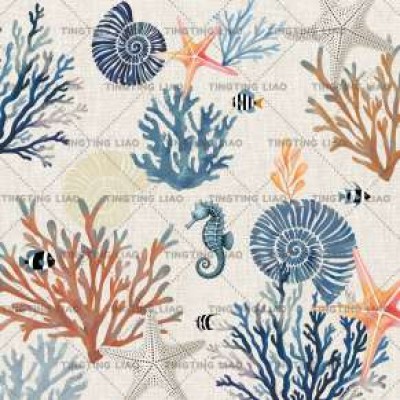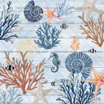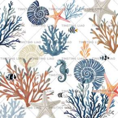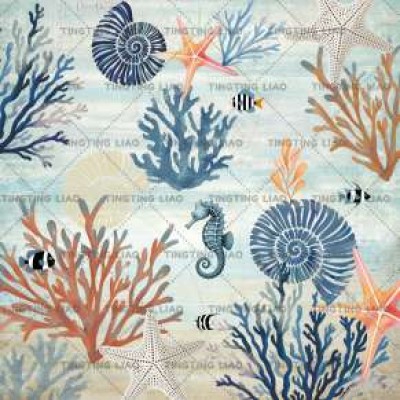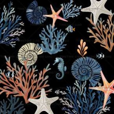 Marine Life,Shells,Corals,Sea Stars,Retro