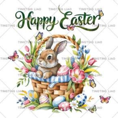 Easter,Flowers,Rabbits,Tulips,Watercolors,Handdrawn Spring