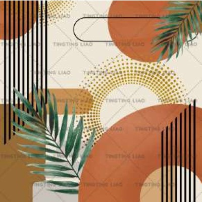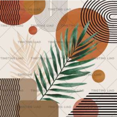 Abstraction,Bosemia,Round,Leaves,Orange,Rice Color,Stripes