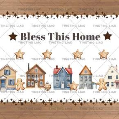 Textures,Family,Watercolor,House,Stars,Wooden Stripes,Flower Bouquet