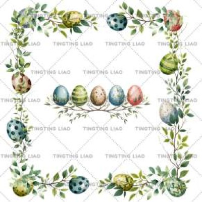 Black And White Larvae,Pigs,Easter,Eggs,Watercolor