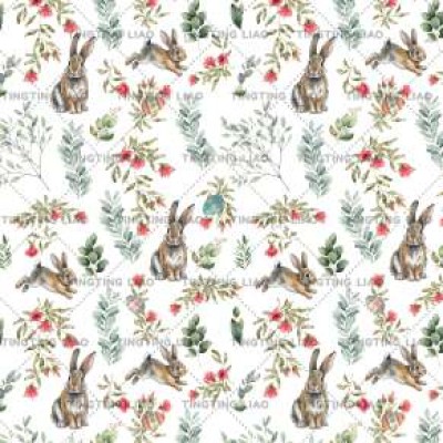 Easter,Watercolor,Rabbit,Flowers,Hand-drawn,Easter,Spring