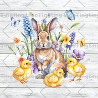 Easter,Chicken,Rabbit,Vintage,White Woodcut