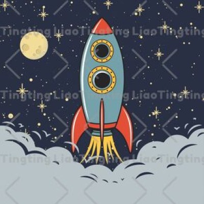 Cartoon,Rocket,Moon,Stars
