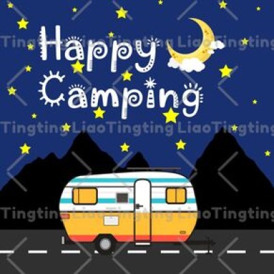 Cartoon,Camping,Moon,Nights,Happy Camping