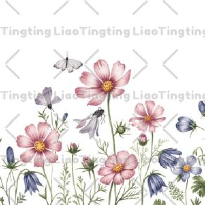 Spring,Flowers,Daisy,Butterflies,Watercolor Style