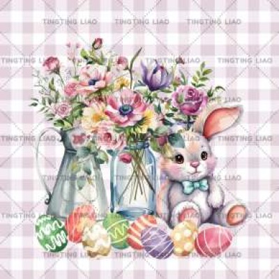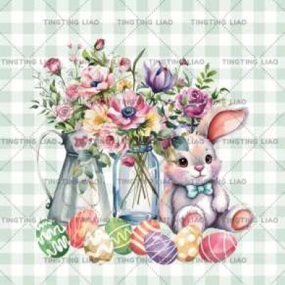 Easter,Flowers,Rabbits,Colored Eggs,Resurrection Eggs,Watercolors,Spring