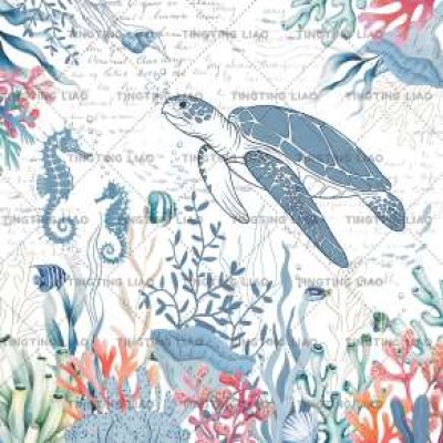 Marine Creatures,Sea Turtles,Corals,Watercolors,Small Fish,Retro