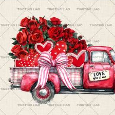Valentine's Day,Roses,Trucks,Watercolors,Art,Decoration