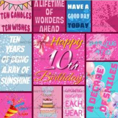 Happy Birthday,A Lifetime Of Wonders Ahead,Have A Good Day Today,Ten Candles Ten Wishes,Ten Years Of Being A Ray Of Sunshine,Darling At 12,A Decade Of Smiles,Growing Brighter Each Year