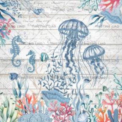 Marine Life,Walrus,Coral,Watercolor,Small Fish,Retro