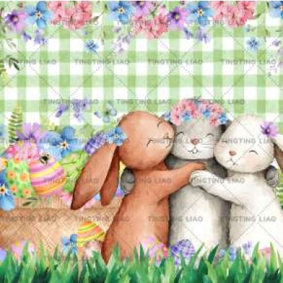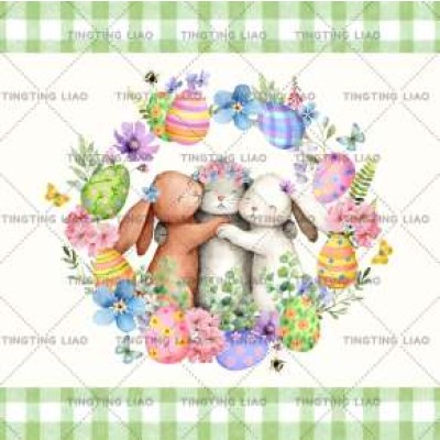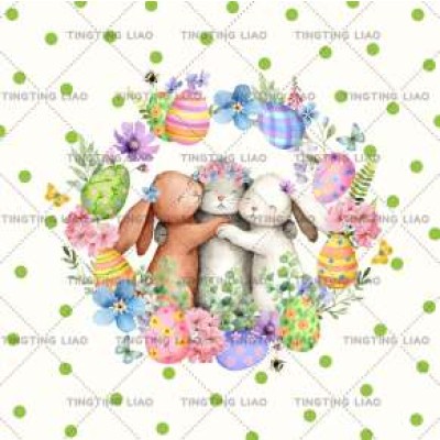 Spring,Easter,Eggs,Flowers,Three Rabbits Series,Green Wave Point