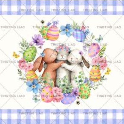 Spring,Easter,Eggs,Flowers,Three Rabbit Series,Purple Stripes