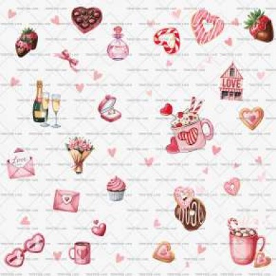 Valentines Day,Spring,Desserts,Love,Flowers,Retro,Scissors,Illustrations,Happy Valentine's Day