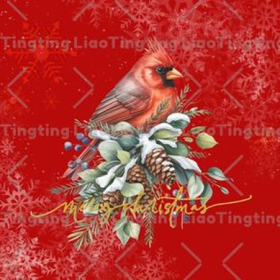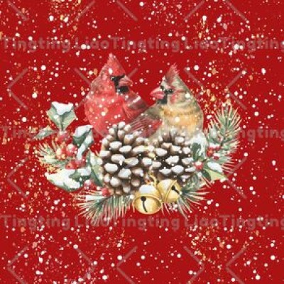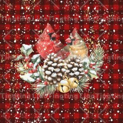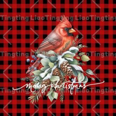 Christmas,Winter,Snowflake,Robin,Watercolor Style,Pine Branch,Plaid