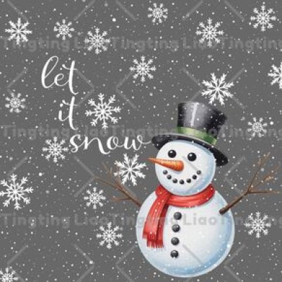 Winter,Christmas,Snowman,Snowflake,Watercolor Style,Let It Snow