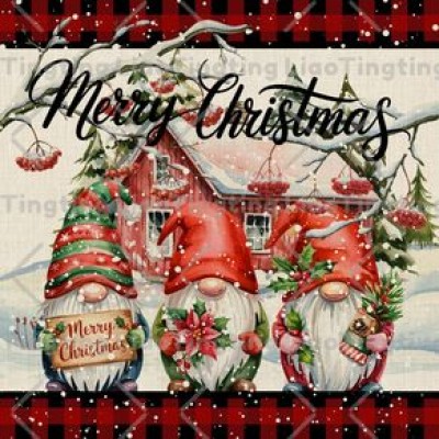 Winter,Christmas,Watercolor Style,Pine,Snowflake,Gnome,Berry,Chalet,Plaid