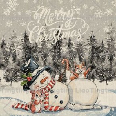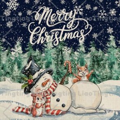 Winter,Christmas,Watercolor Style,Pine,Snowflake,Snowman,Squirrel,Plaid