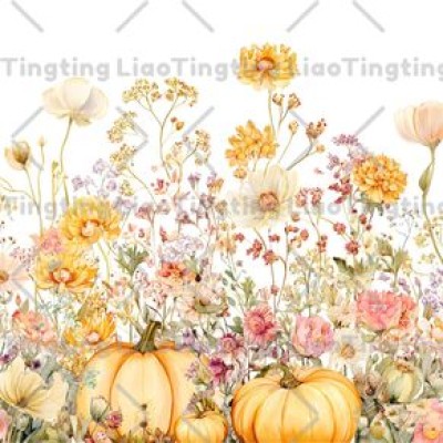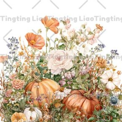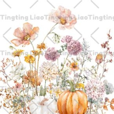 Flowers,Watercolor,Farmhouse,Pumpkin,Autumn,Thanksgiving,Retro