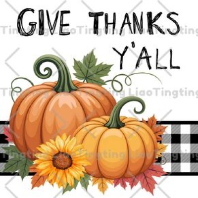 Autumn,Thanksgiving,Pumpkin,Yellow Leaf,Checkered Element,Give,Thanks,Y'all