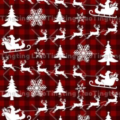 Christmas,Plaid Background,Christmas Elements,Santa Claus,Elk,Pine,Snowflakes