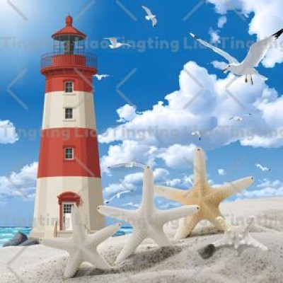 Sea,Beach,Lighthouse,Starfish,Seagull,Sunshine,Blue Sky