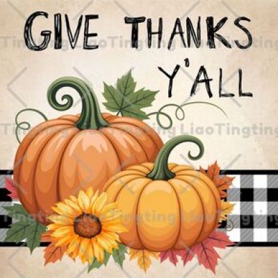 Autumn,Thanksgiving,Pumpkin,Yellow Leaf,Checkered Element,Give,Thanks,Y'all
