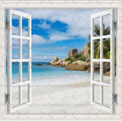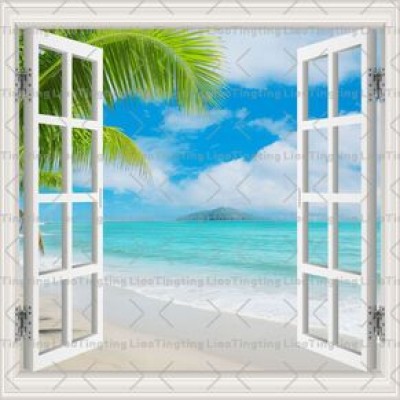 Windows,Seascape,Coconut Trees,Sandy Beach,Sea Level,Sky