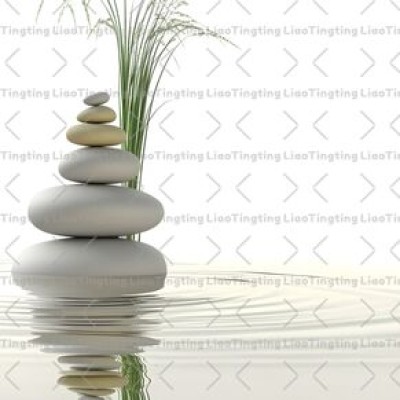 Tranquil And Peaceful,Smooth Rock,Plant,Water Ripple,Art Style,Surrealism,Lines,Grass,Balance,Relax,Simple,Elegant