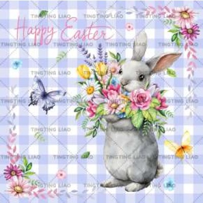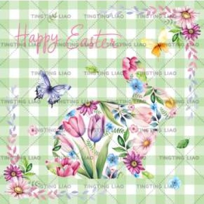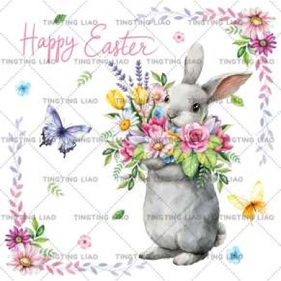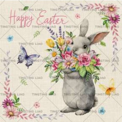 Easter,Rabbits,Flowers,Butterflies,Spring,Text,Leaves,Watercolor,Sackcloth