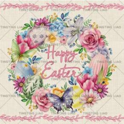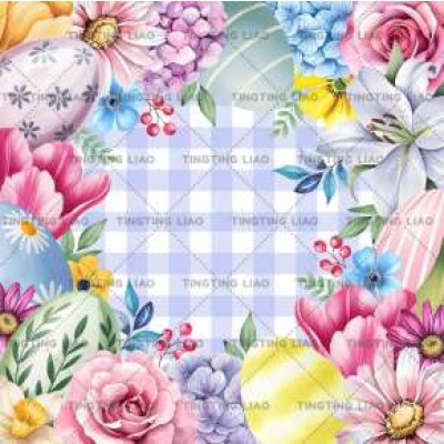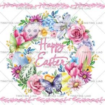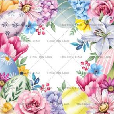 Easter,Flowers,Eggs,Butterflies,Daisy,Roses,Lilies,Embroidered Balls,Spring,Watercolor